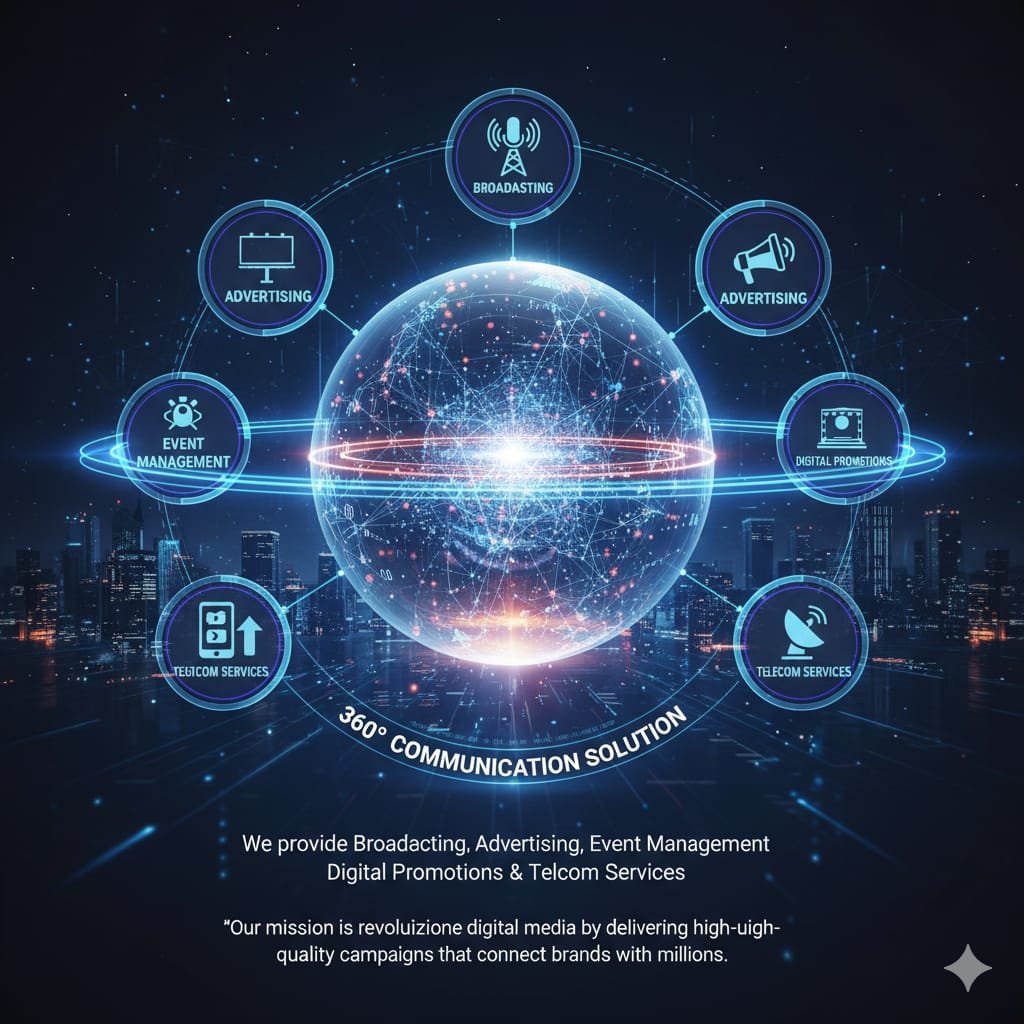 We provide Broadcasting, Advertising, Event Management, Digital Promotions & Telecom Services. Our mission is to revolutionize digital media by delivering high-quality campaigns that connect brands with millions.
